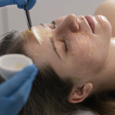 Zabieg rozpoczyna się od dokładnego demakijażu i oczyszczenia skóry, a następnie delikatnego peelingu enzymatycznego Medik8 Surface Radiance, który usuwa martwe komórki naskórka, wygładza cerę i przygotowuje ją na kolejne etapy.