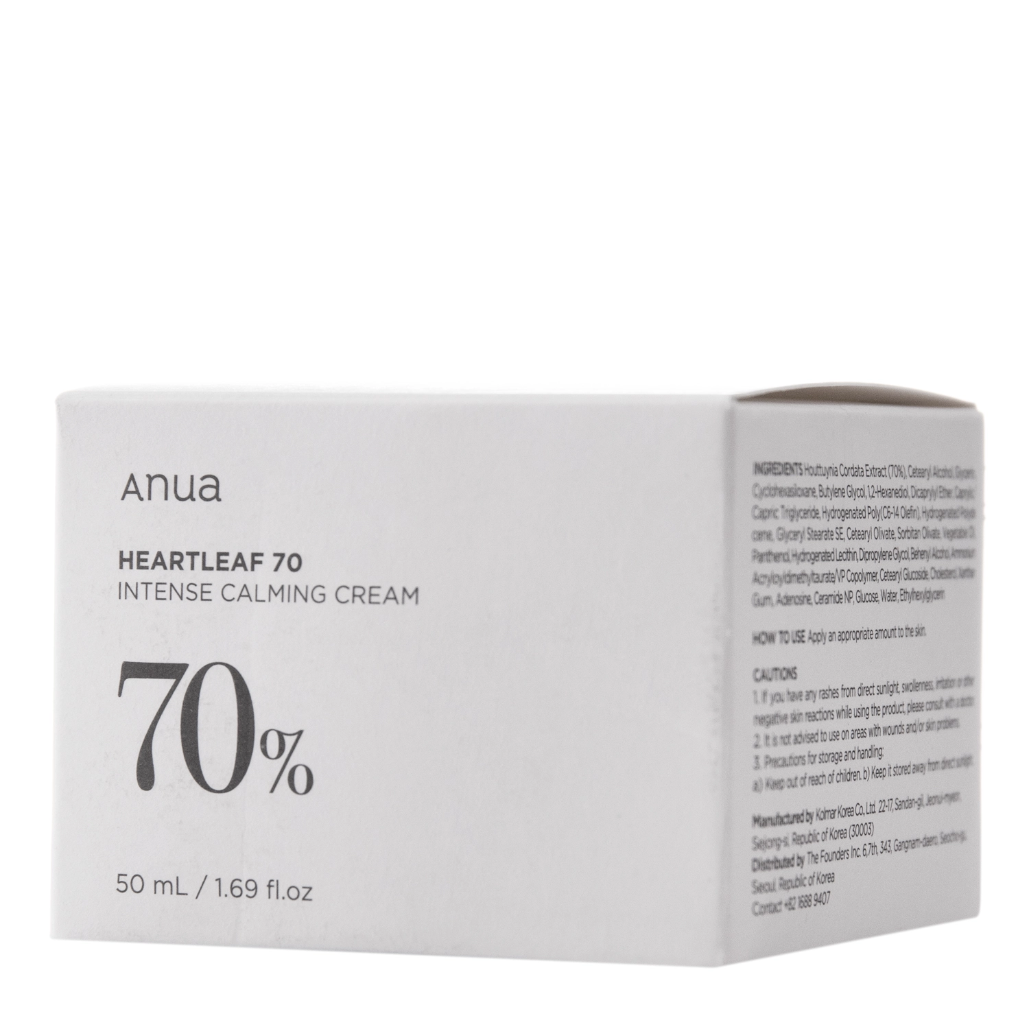 Anua - Heartleaf 70% Intense Calming Cream - Kojący Krem do Twarzy z Ekstrakem z Pstrolistki - 50ml