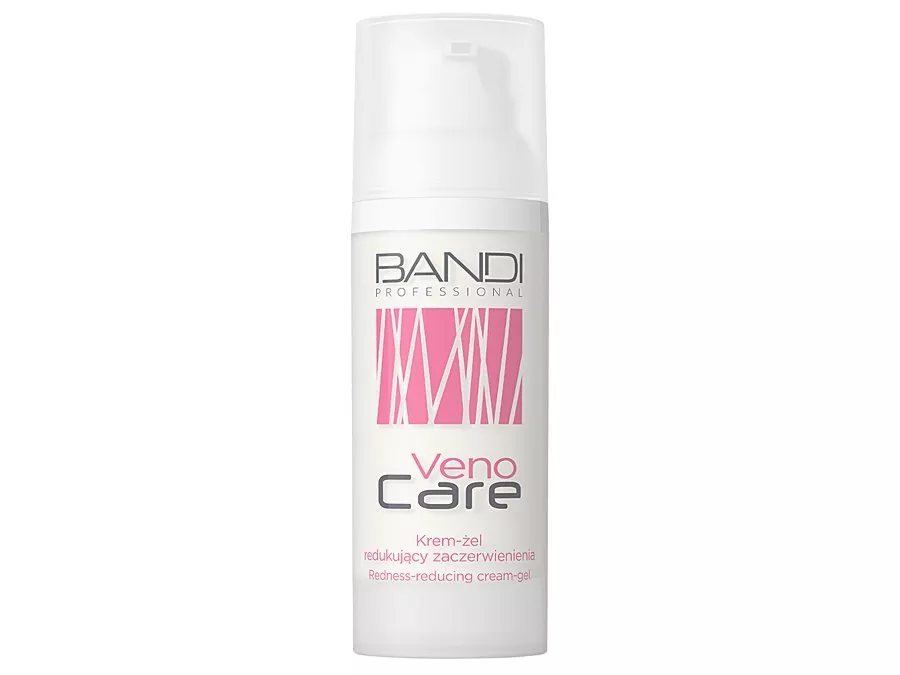 Bandi - Proffesional - Veno Care - Redness-Reducting Cream-Gel lekki krem-żel o niekomedogennej formule. Zawiera składniki, które redukują zaczerwienienia, wyrównują koloryt skóry i wzmacniają ściany naczyń krwionośnych, jak kompleks Phytotal VT PS, ekstrakty z lukrecji, morwy białej, brzoskwini, tarczycy bajkalskiej czy bogaty w rutynę ekstrakt z sofory japońskiej. Natomiast występujący w produkcie skwalan działa nawilżająco, a pantenol łagodzi podrażnienia.