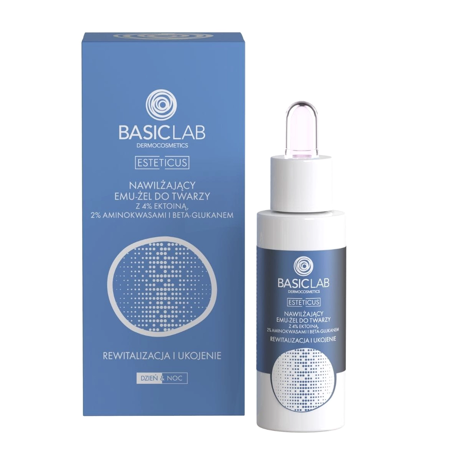 BasicLab - Esteticus - Rewitalizacja i Ukojenie - Nawilżający Emu-Żel do Twarzy z 4% Ektoiną, Aminokwasami i Beta-Glukanem
