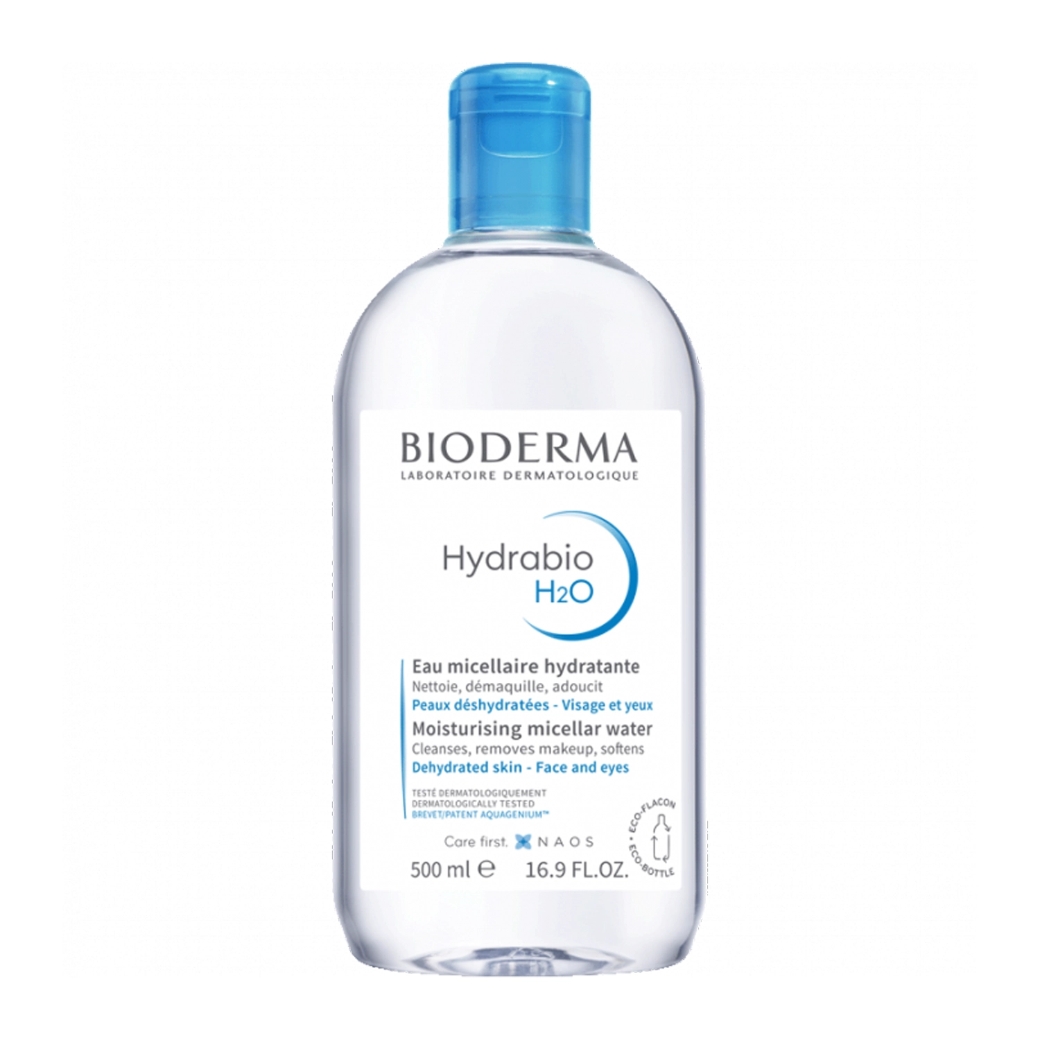 Bioderma - Hydrabio H2O - płyn micelarny do usuwania makijażu i oczyszczania skóry przesuszonej, odwodnionej i wrażliwej. Zawiera patent Aquagenium™, który sprawia, że zanieczyszczenia są usuwane bez naruszania bariery hydrolipidowej skóry, dzięki czemu nie traci ona nawilżenia. Dodatkowo został wzbogacony o cukry, niacynamid oraz ekstrakty z ogórka i jabłka, które działają nawilżająco i łagodząco na skórę.
