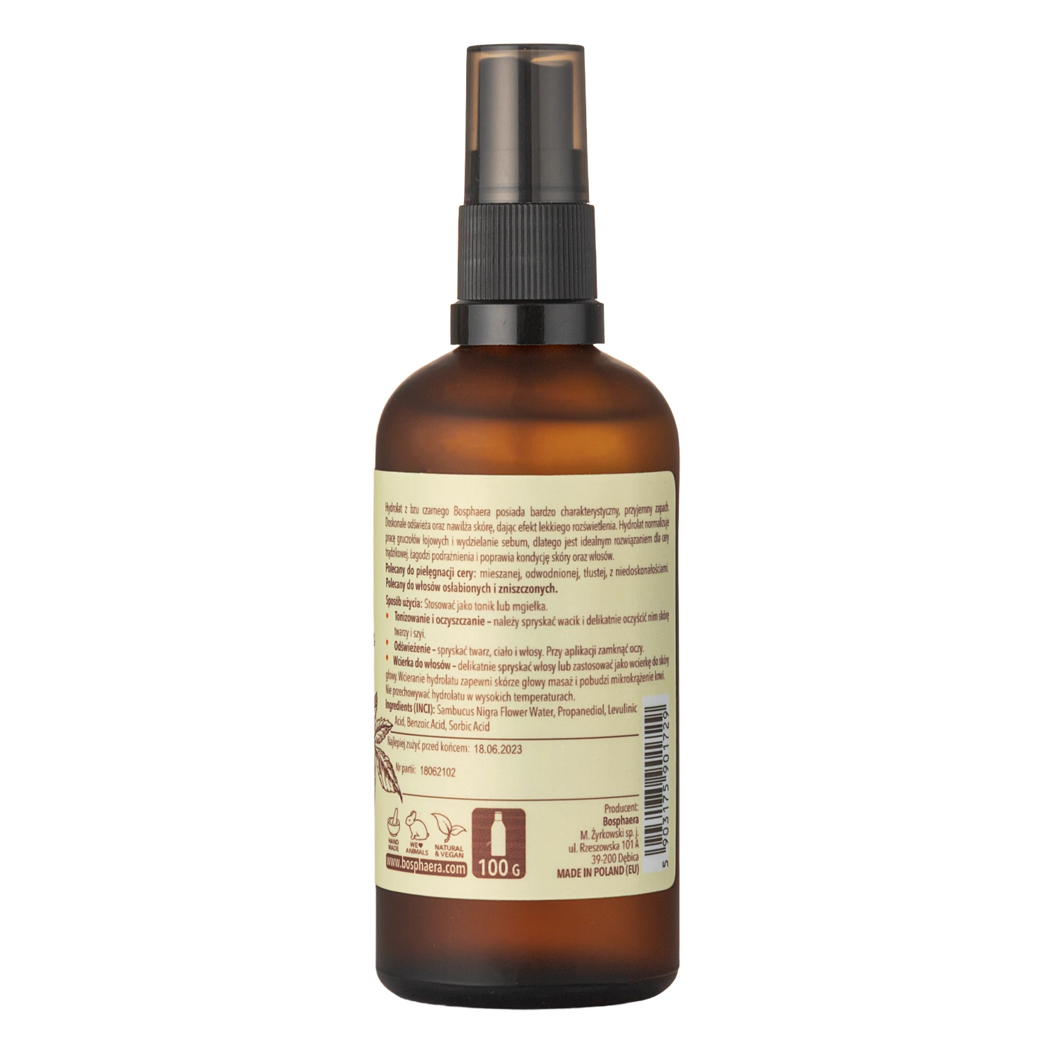 Bosphaera - Hydrolat z Kwiatów Bzu Czarnego - hydrolat, który odpowiada na potrzeby wielu rodzajów skór. Skutecznie wyrównuje koloryt cery, łagodzi stany zapalne i podrażnienia oraz nawilża. Wykazuje również działanie antyseptyczne i chroni przed szkodliwym działaniem wolnych rodników. Produkt jest stworzony ze składników pochodzenia naturalnego i zgodny z less waste.