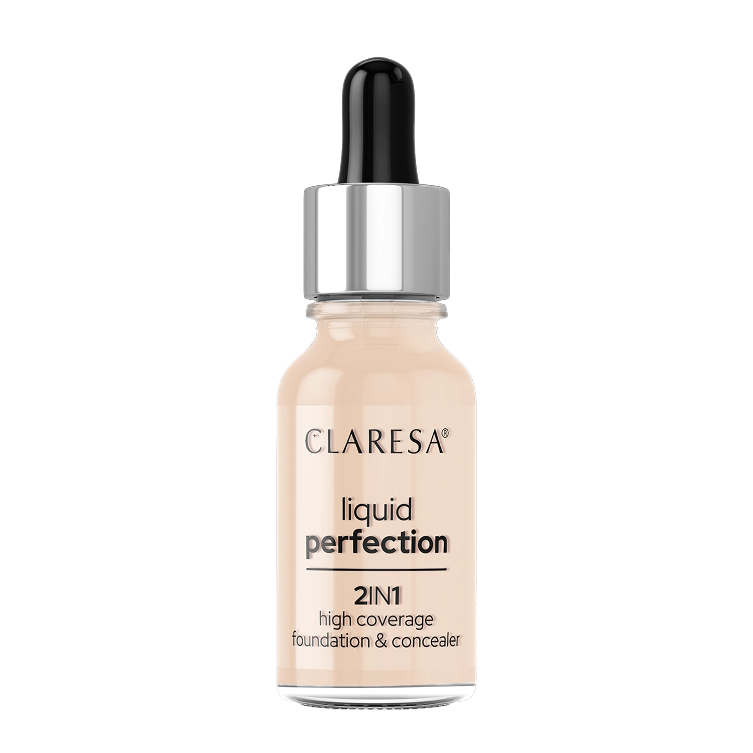 Claresa - Liquid Perfection - 102 Warm Medium - produkt 2w1, który może być stosowany zarówno jako podkład, jak i korektor. Posiada lekką, płynną konsystencję. Wygląda na skórze świeżo i naturalnie. Gwarantuje mocne krycie, które można stopniować, w zależności od ilości zaaplikowanych warstw produktu. Zapewnia efekt wygładzenia, wyrównania kolorytu oraz przykrycia niedoskonałości. Pozostawia na skórze aksamitne, matowe wykończenie. Posiada poręczną buteleczkę z aplikatorem w postaci pipety. Został wzbogacony o kwas hialuronowy, który nawilża skórę. Formuła produktu jest wegańska.