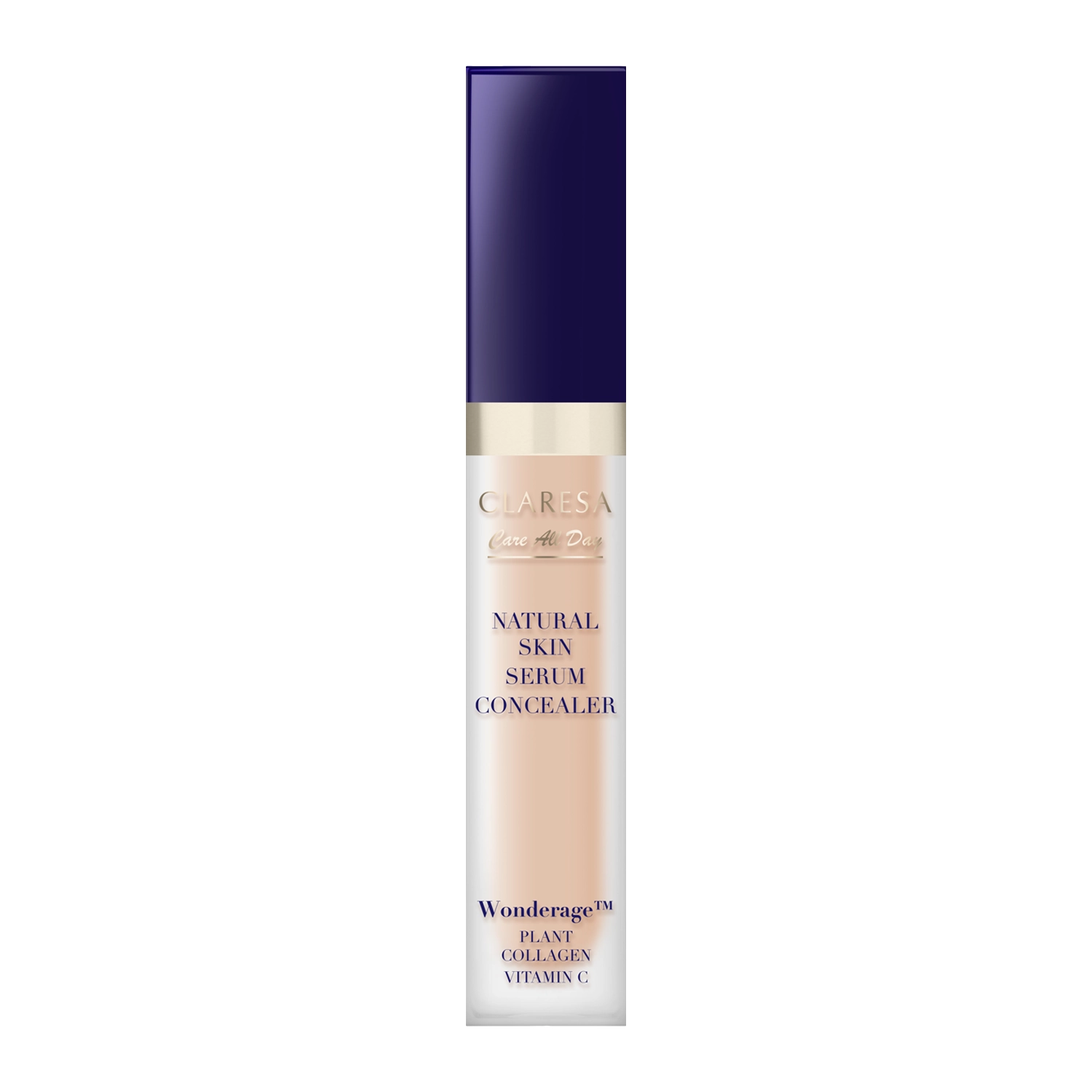 Claresa - Natural Skin Serum Concealer - 1W Light Warm - korektor-serum do twarzy i pod oczy, który łączy w sobie właściwości korygujące oraz pielęgnacyjne. Zawiera składniki aktywne tj. WONDERAGE™, roślinny odpowiednik kolagenu i witaminę C w stabilnej formie. Ich połączenie poprawia poziom nawilżenia naskórka, a przede wszystkim działa przeciwstarzeniowo i ujędrniająco, czyniąc z tego produktu idealną propozycję dla cer wiotkich i dojrzałych. Lekka, kremowa konsystencja doskonale rozprowadza się na skórze, nie obciążając jej, a ponadto nie zbiera się w załamaniach skóry i zmarszczkach. Korektor-serum wykazuje średni poziom krycia, a jego formuła jest długotrwała i zastygająca. Produkt sprawdzi się dla delikatnej skóry wokół oczu.