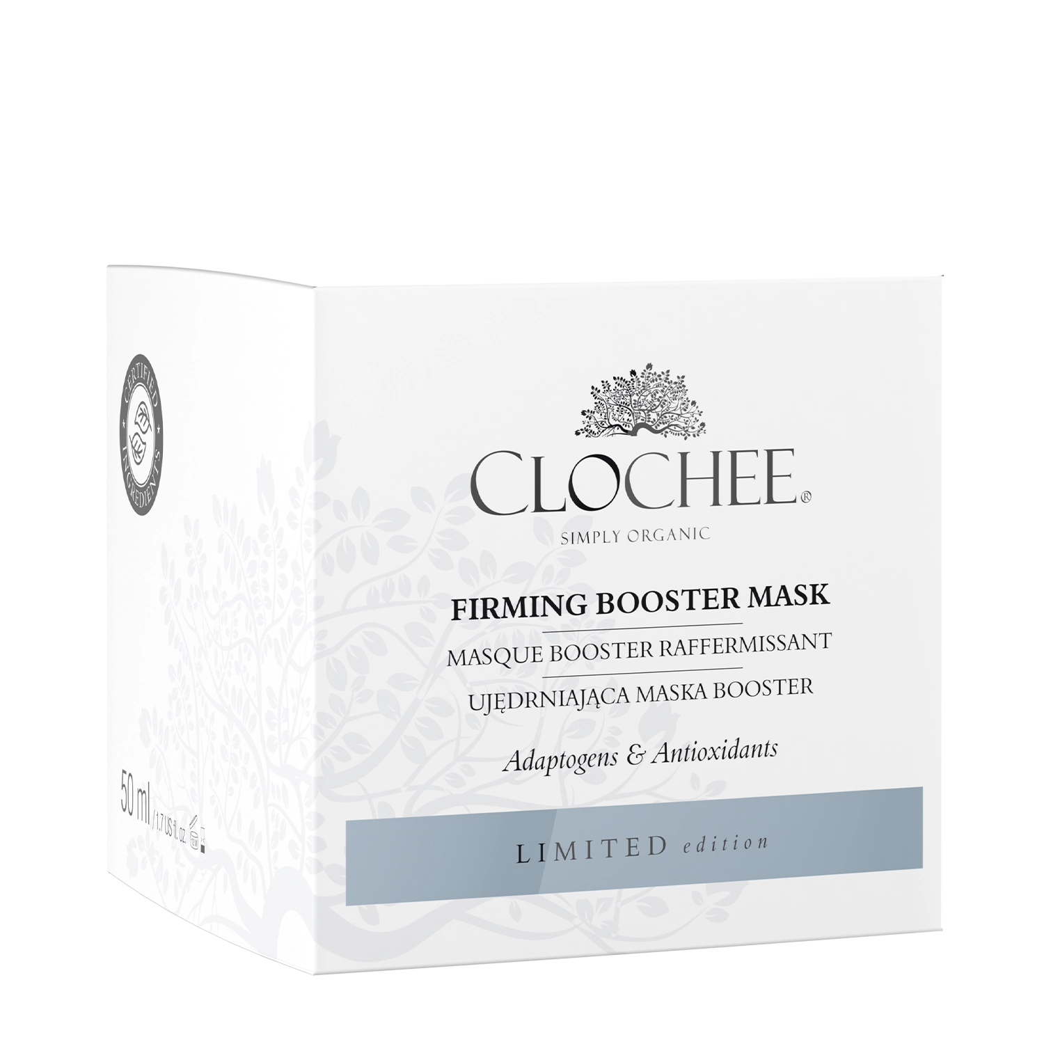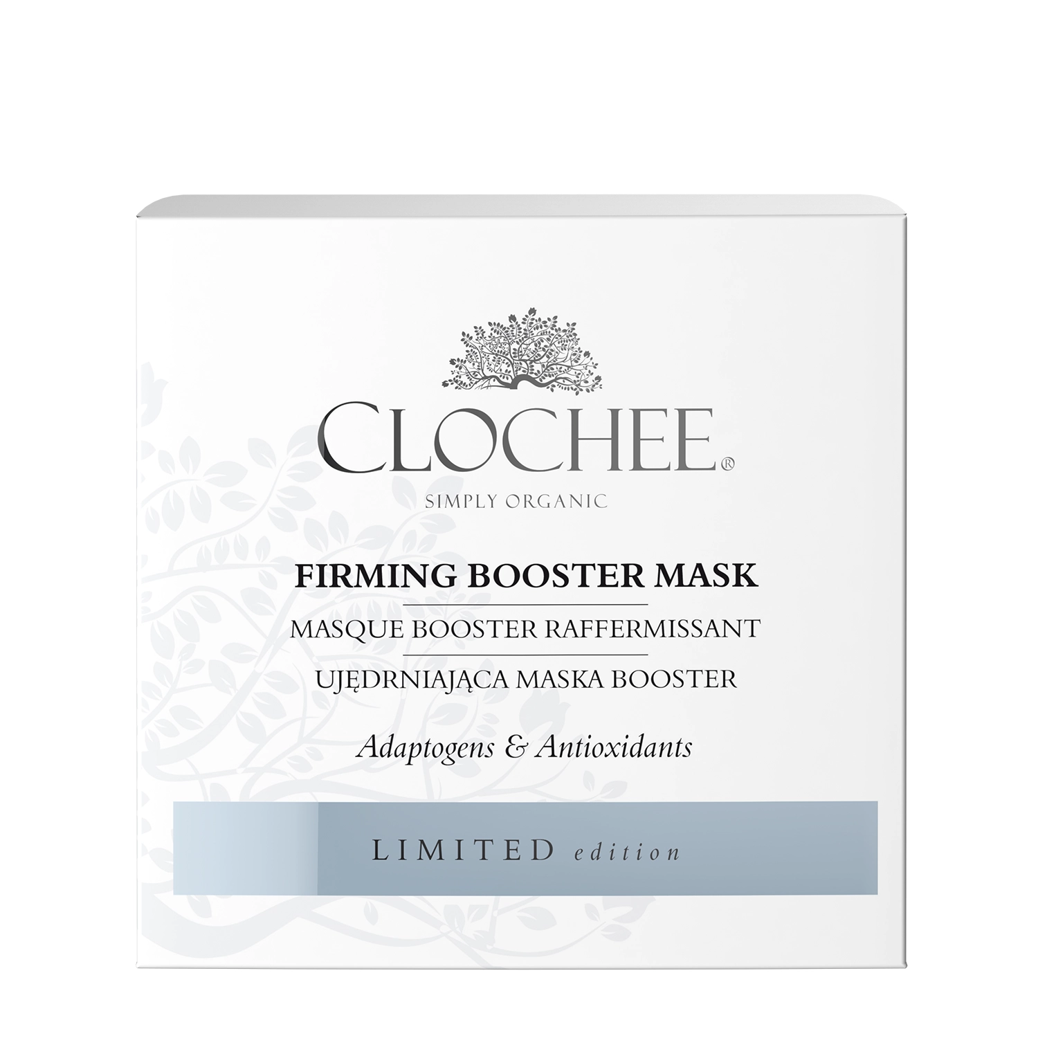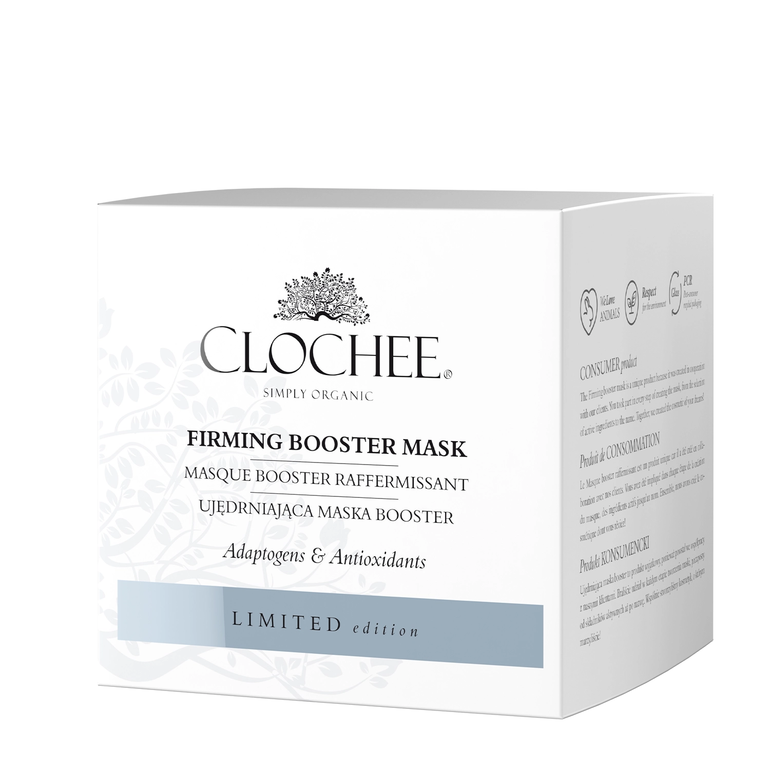 Clochee - Firming Booster Mask - maska o kremowej konsystencji, która dostarcza skórze odżywienia, dba o nawilżenie i rewitalizuje skórę. W jej skład wchodzi niacynamid, który wzmacnia barierę ochronną skóry i działa antyoksydacyjnie oraz rozjaśniająco. Z kolei tripelargonin dba o ograniczenie utraty wody z naskórka, a prebiotyk w postaci inuliny przywraca balans mikrobiomu i łagodzi podrażnienia. Skwalan głęboko nawilża i odżywia skórę. Ponadto ekstrakt z hibiskusa wyrównuje koloryt, a dodatkowo korzystnie wpływa na ściany naczyń krwionośnych i ich elastyczność. Ujędrnia i działa przeciwstarzeniowo. Maska ma wegańską formułę, która zawiera 95,7% składników pochodzenia naturalnego, a jej opakowanie jest przyjazne środowisku.