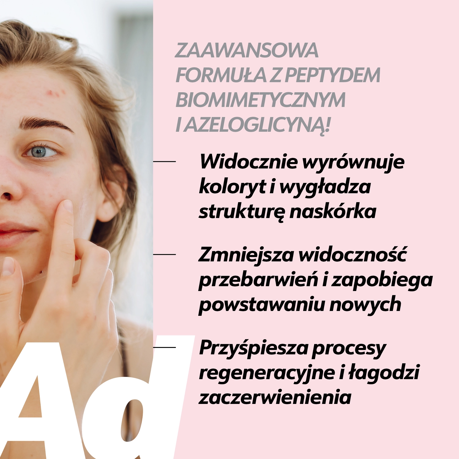 - azeloglicynę - rozjaśnia przebarwienia, łagodzi zaczerwienienia, niweluje powstawanie niedoskonałości,