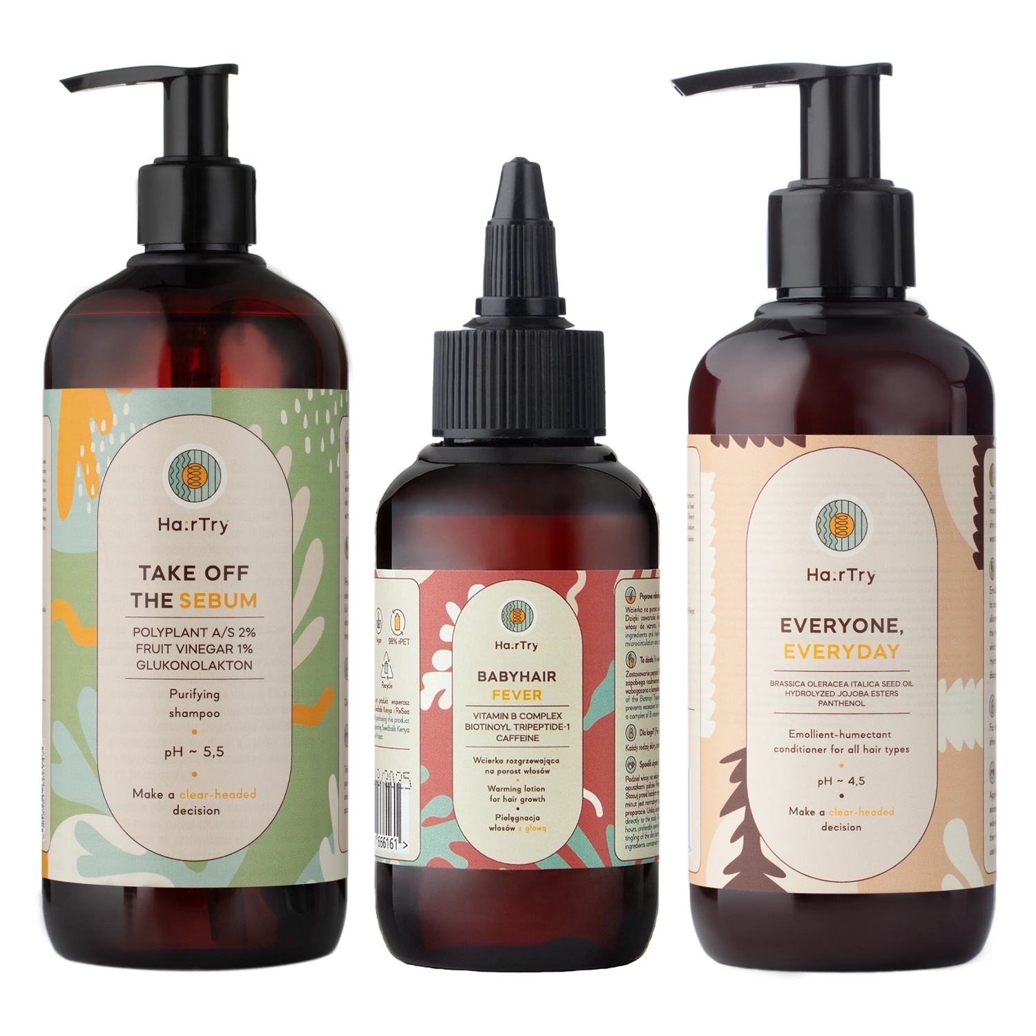 - Take Off The Sebum - szampon o działaniu oczyszczającym i przedłużającym świeżość. Stworzony z myślą o skórze głowy skłonnej do przetłuszczania oraz o włosach przyklapniętych, pozbawionych objętości. Jego żelowa formuła z łatwością się pieni, a dzięki odpowiedniej lepkości nie przecieka przez palce podczas aplikacji. Zastosowane mieszane środki powierzchniowo czynne (anionowe, amfoteryczne i niejonowe) zapewniają dokładne oczyszczenie, nie powodując podrażnień i przesuszenia. W szamponie poza składnikami bazowymi znajdują się także pielęgnujące składniki aktywne, takie jak: 2% POLYPLANT A/S, 1% Fruit Vinegar, a także glukonolakton. Regularne stosowanie odbija włosy od nasady oraz dodaje im objętości, a po użyciu włosy są sypkie i lekkie. Jego świeży, lekko perfumeryjny zapach umila aplikację. Jego pojemność wynosi 500 ml.