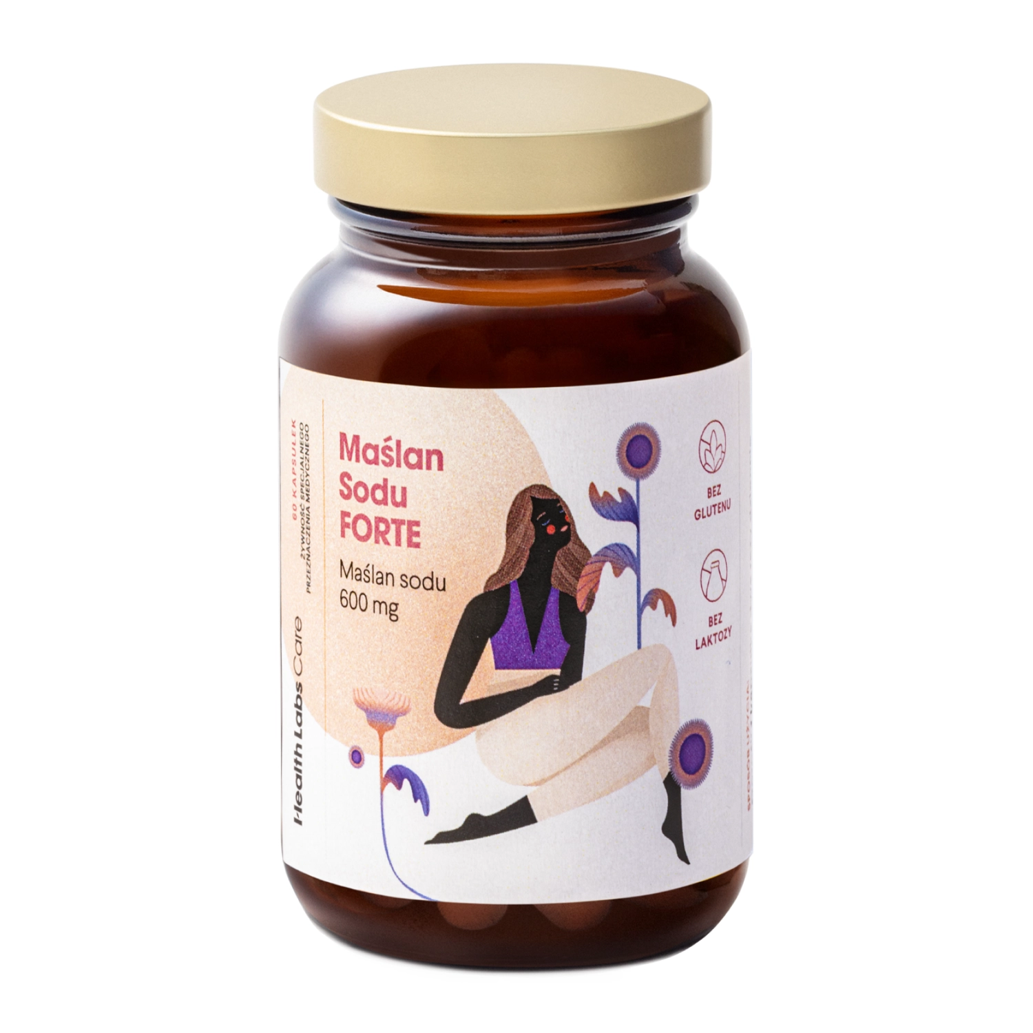 Health Labs Care - Maślan Sodu FORTE Kapsułki - suplement codziennej diety w kapsułkach. Jedna kapsułka zawiera skoncentrowaną dawkę substancji czynnej - kwasu masłowego, który zapewnia prawidłowe trawienie, odżywienie organizmu i wspiera utrzymanie komfortu jelit. Oprócz tego, maślan sodu uczestniczy w regeneracji błony śluzowej i wspiera wzrost ilości dobrych bakterii. Komfort układu pokarmowego bardzo często przekłada się na poprawienie stanu skóry. Formuła suplementu jest wegańska.