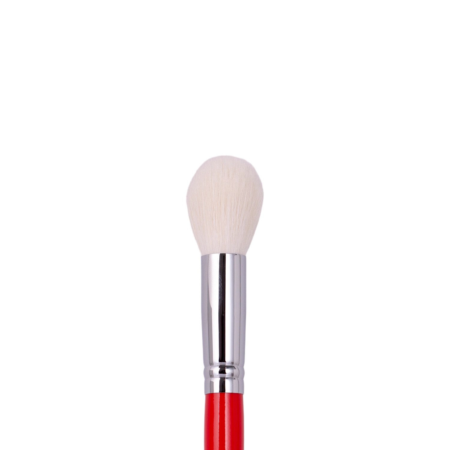 - pędzel wykonany z naturalnego włosia kozy, ułożonego w stożkowaty kształt. Idealnie sprawdzi się do aplikacji produktów do konturowania (bronzera i rozświetlacza). Umożliwia precyzyjne konturowanie i rozświetlanie twarzy, podkreśla kości policzkowe zapewniając efekt modelowania.