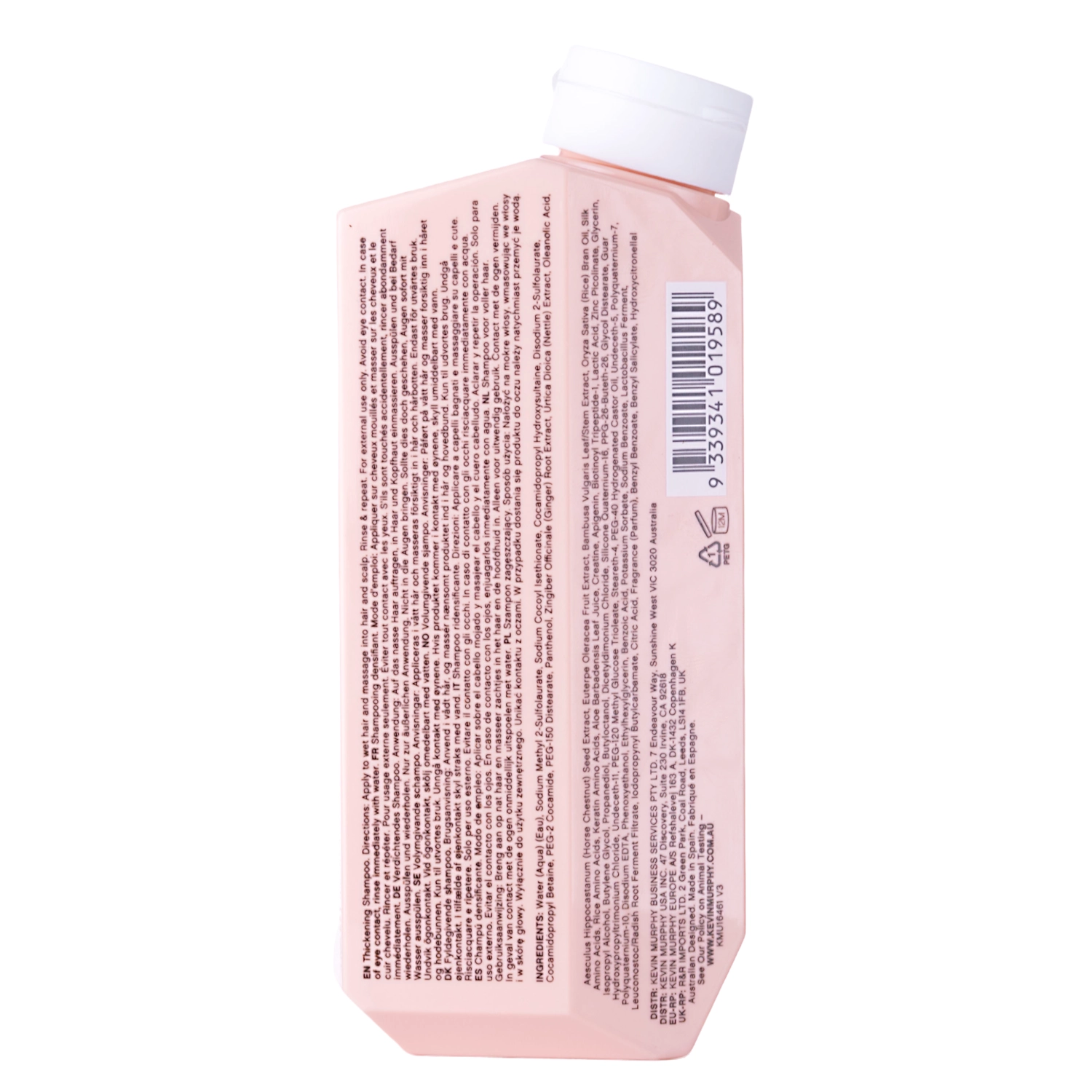 Kevin Murphy - Plumping Wash - szampon do włosów cienkich i skłonnych do wypadania. Oczyszcza włosy i skórę głowy. Zawiera ekstrakty: z pokrzywy i z korzenia imbiru, które wykazują działanie stymulujące i przyspieszające porost włosów oraz zapobiegające ich wypadaniu. Po zastosowaniu szamponu włosy stają się nawilżone, odżywione i łatwo się rozczesują. Opakowanie produktu jest zgodne z duchem less waste.