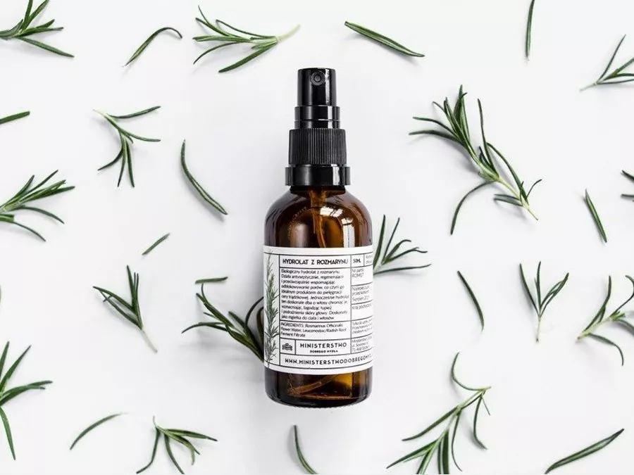 - hydrolat z rozmarynu - działa antyseptycznie, koi i łagodzi podrażnienia,