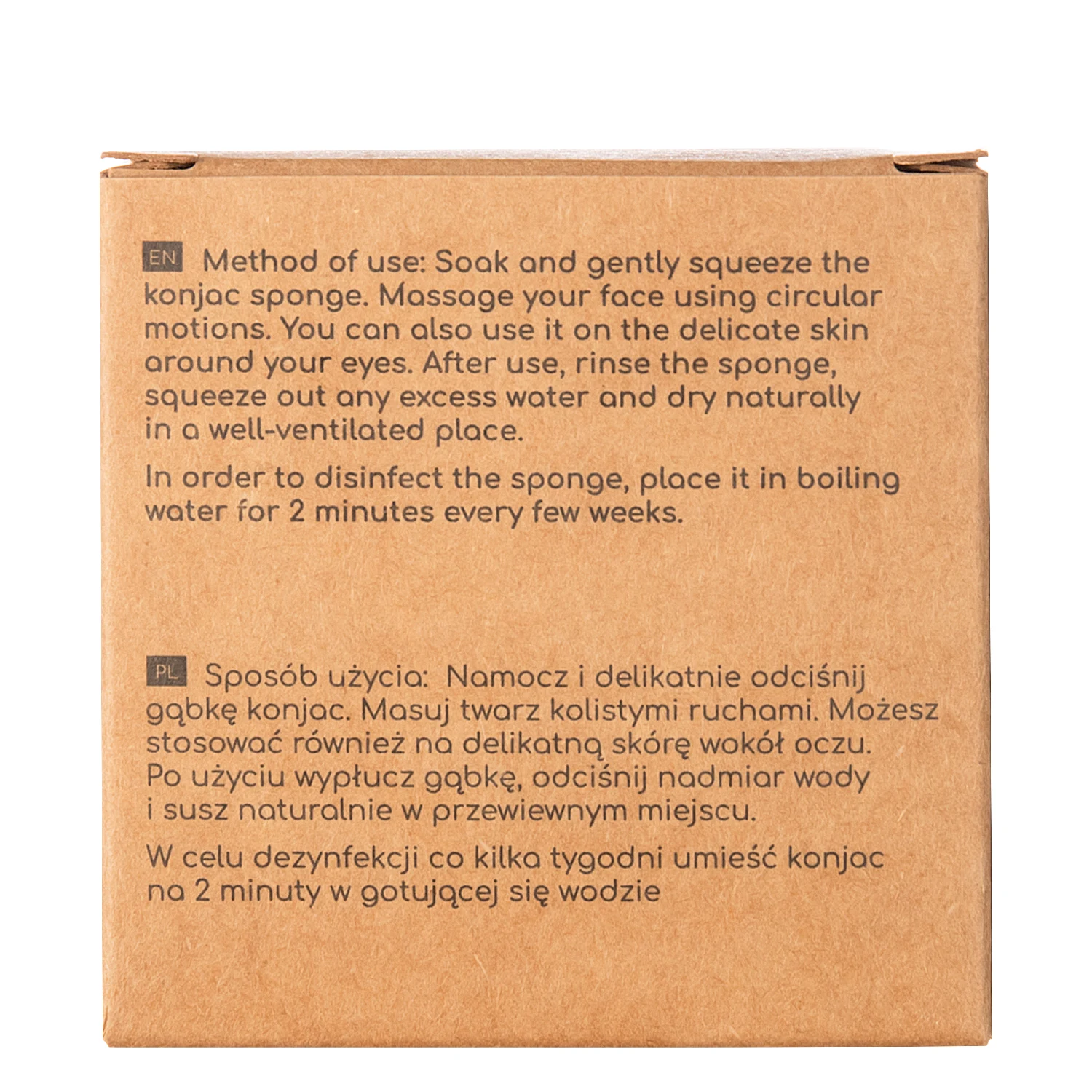 Sposób aplikacji: Zmocz gąbkę w ciepłej wodzie i delikatnie odciśnij, następnie masuj nią twarz. Dokładnie wypłucz gąbkę, odciśnij nadmiar wody i pozostaw do wyschnięcia.