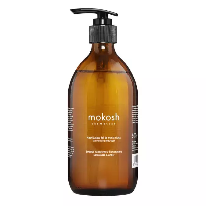 Mokosh - Nawilżający Żel do Mycia Ciała Drzewo Sandałowe z Bursztynem - żel do mycia ciała, który skutecznie oczyszcza skórę z zanieczyszczeń, a dzięki dodatkowi prebiotyków wzmacnia jej barierę ochronną. Betaina i aloes działają nawilżająco, a ekstrakt z bursztynu łagodzi stany zapalne. Dodatek ekstraktu z drzewa sandałowego sprawia, że skóra pozostaje przyjemnie miękka w dotyku. Produkt posiada przyjemny, otulający zapach.