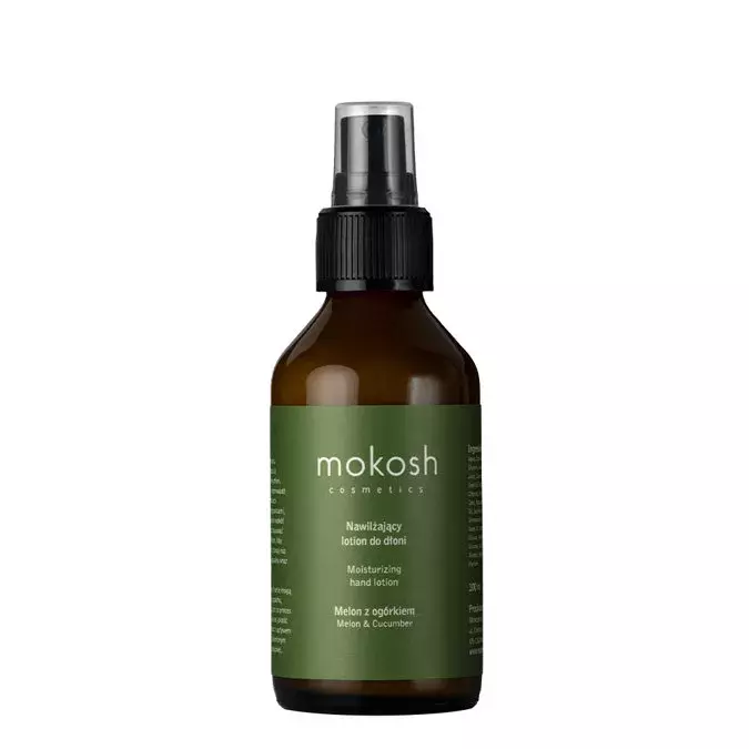 Mokosh - Nawilżający Lotion do Dłoni - Melon z Ogórkiem - krem do rąk o działaniu nawilżającym. Dzięki zawartości oleju z pestek ogórka wpływa na regenerację naskórka, a olej macadamia odżywia i zwiększa elastyczność skóry. Dodatek wosku z borówki zapobiega nadmiernej utracie wody, a aloes łagodzi stany zapalne i podrażnienia. Produkt posiada lekką konsystencję i przyjemny zapach melona z ogórkiem.