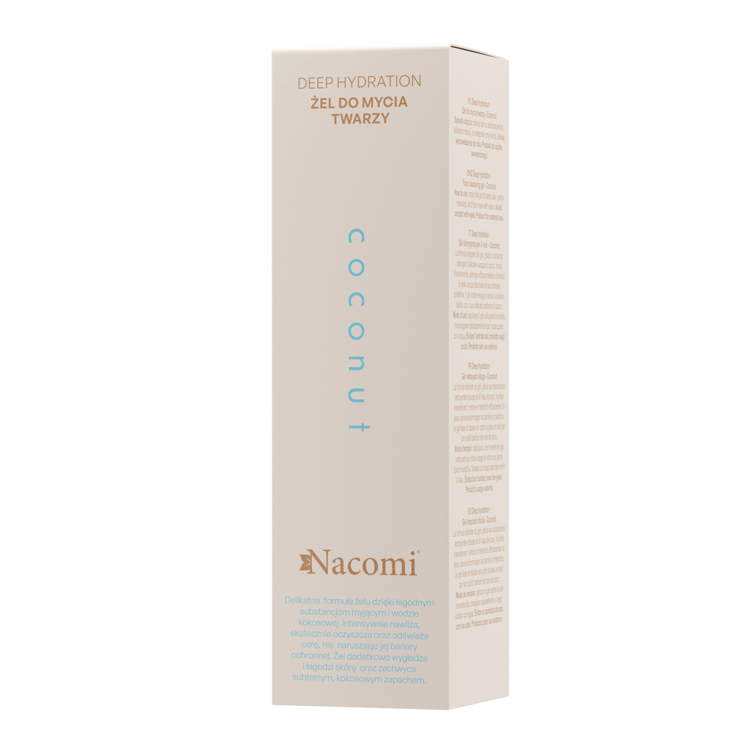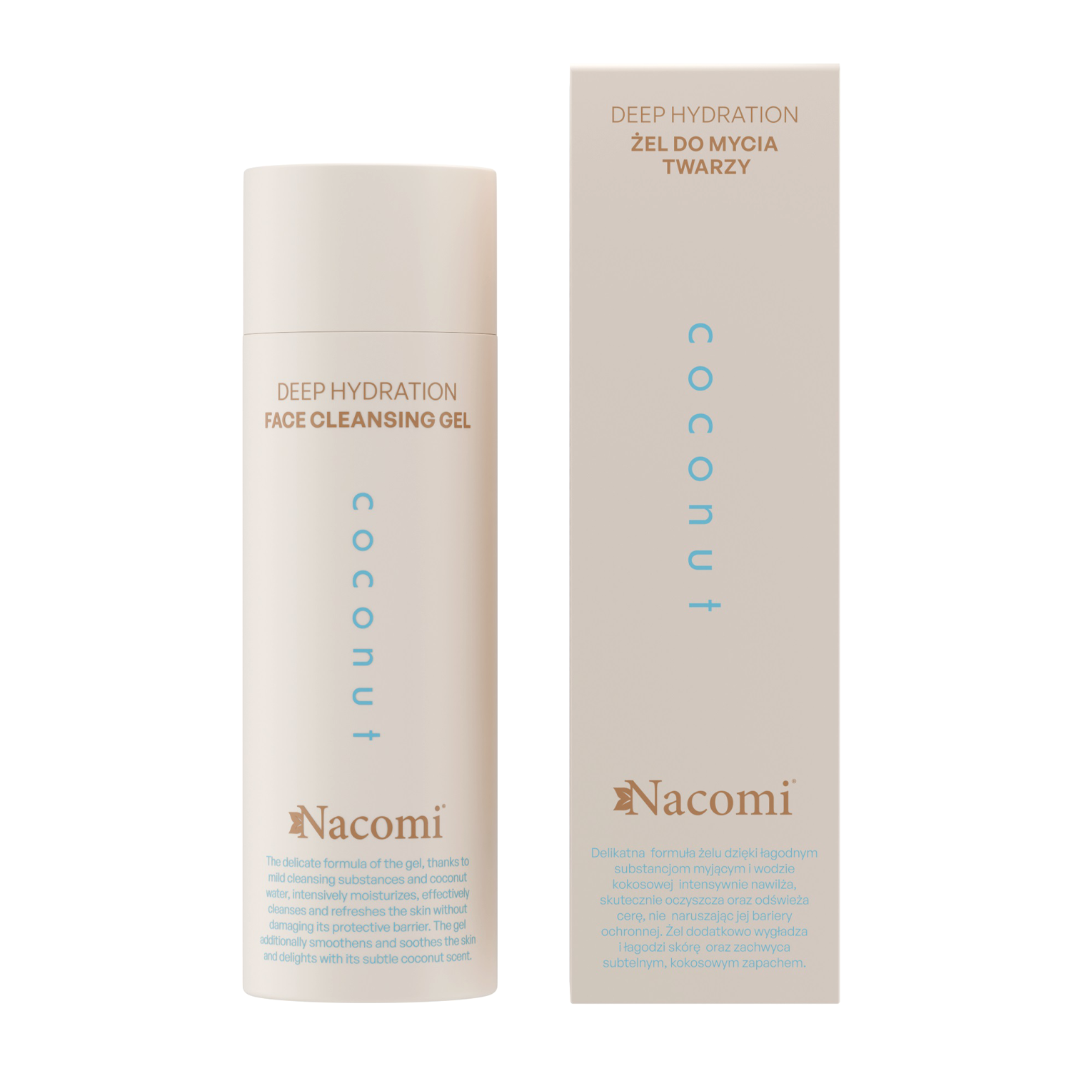 Nacomi - Deep Hydration - Coconut - żel do mycia twarzy zawierający delikatne substancje myjące, które dokładnie oczyszczają skórę, bez ryzyka podrażnień. W składzie znajdziemy ekstrakt z kokosa, który poprawia poziom nawilżenia naskórka, odżywia go i nadaje blasku, oraz pantenol, który uelastycznia skórę, łagodzi wszelkie podrażnienia i wspiera regenerację. Dodatkowo lecytyna odpowiada za nawilżenie i wzmocnienie bariery ochronnej skóry. Z kolei prebiotyk koi skórę, zapobiega przedwczesnemu starzeniu oraz działa przeciwzapalnie, a witamina E, która jest silnym antyoksydantem, wzmacnia barierę naskórkową, zapobiega podrażnieniom oraz hamuje ucieczkę wody ze skóry.