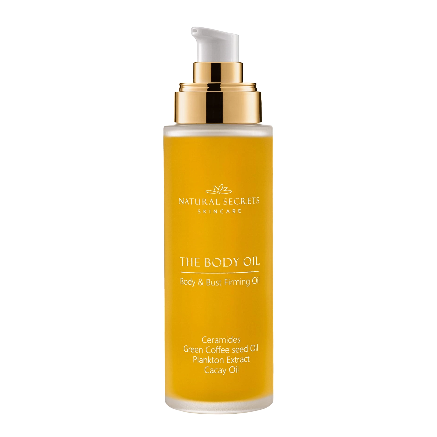 Natural Secrets - The Body Oil - olejek do ciała i biustu z innowacyjnym składnikiem Lipout™, który wspiera redukcję nadmiaru tkanki tłuszczowej, w ten sposób wygładzając naskórek o nierównej strukturze oraz z cellulitem. Formuła na bazie olejów roślinnych tj. olej makadamia, z zielonej kawy, ze słodkich migdałów, z pestek moreli czy unikatowy olej cacay. Ich połączenie wraz z ceramidami głęboko odżywia skórę, nadaje jej miękkość, gładkość i sprężystość. Dodatek witaminy E działa antyoksydacyjnie i poprawia elastyczność skóry, a olejki eteryczne odpowiadają za zapach produktu, wpływając korzystnie na walory aplikacyjne olejku, ale także stymulując krążenie skórne. W konsekwencji olejek dba o wiotką skórę biustu oraz pielęgnuje skórę ud czy pośladków z problemem cellulitu i tzw. pomarańczowej skórki. Produkt polski.