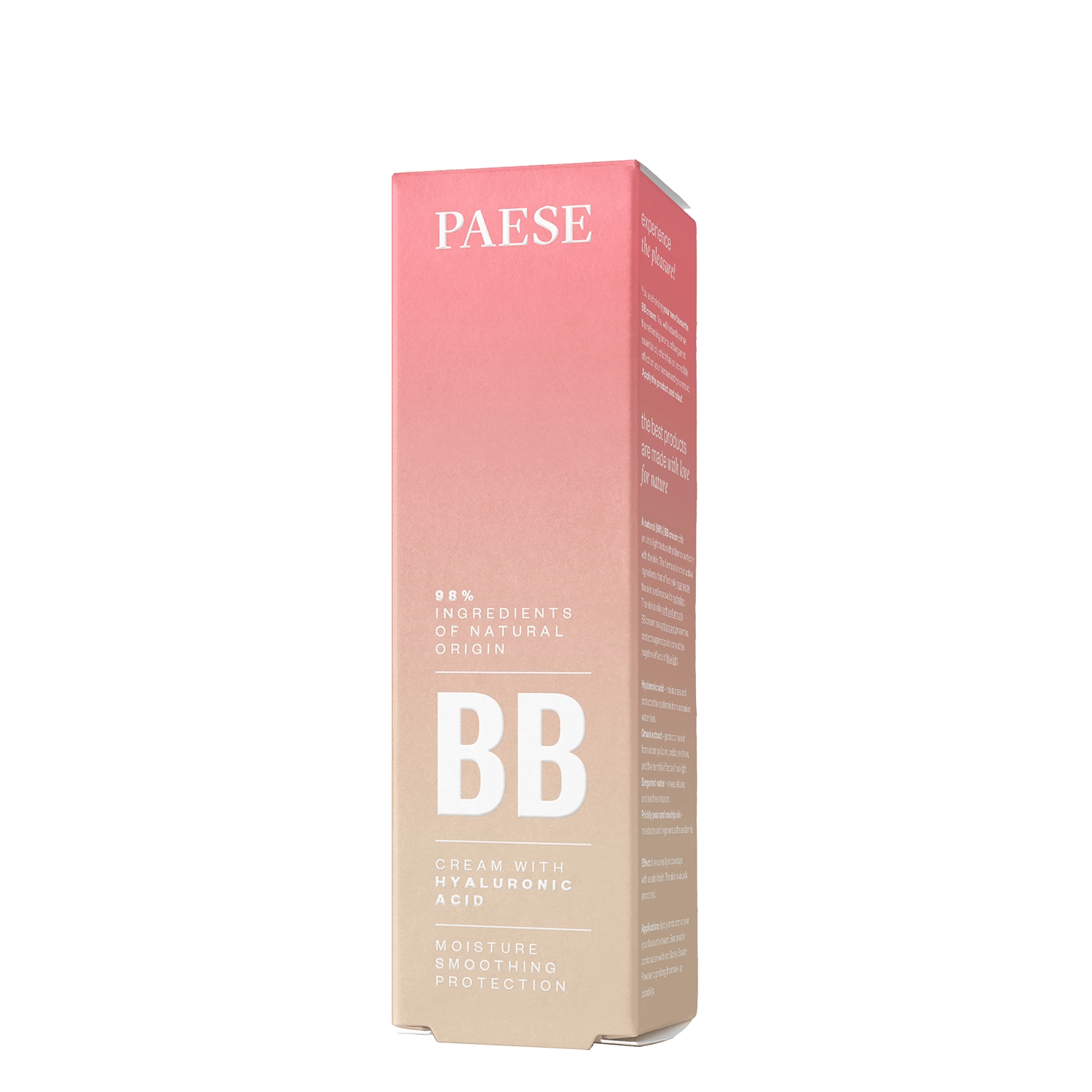 Paese - Krem BB z Kwasem Hialuronowym - Beige - krem BB do codziennego makijażu twarzy. Zapewnia lekkie krycie oraz satynowe, delikatnie matowe wykończenie. Nie obciąża skóry a dodatkowo zawiera cenne witaminy C i E, które posiadają właściwości antyoksydacyjne, spowalniające procesy starzenia się skóry oraz niwelujące szkodliwe działanie czynników środowiskowych. Krem posiada subtelny zapach zmysłowej bergamotki, a jego receptura jest wegańska i w 98% skomponowana ze składników pochodzenia naturalnego.