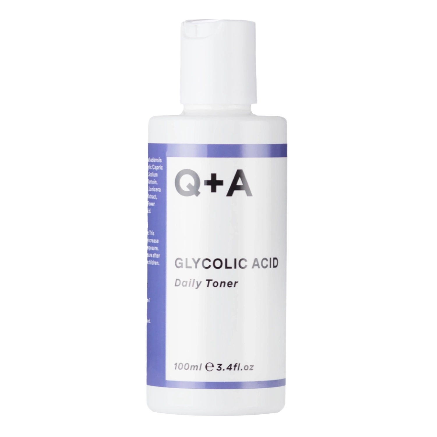 Q+A - Glycolic Acid Daily Toner - tonik z kwasem glikolowym o stężeniu 3,85%. Kwas ten działa złuszczająco, rozjaśnia przebarwienia, stymuluje produkcję kolagenu i elastyny, dzięki czemu ujędrnia skórę i działa przeciwstarzeniowo. Dodatkowo reguluje wydzielanie sebum i zmniejsza niedoskonałości. W składzie znajduje się również alantoina, która koi i minimalizuje podrażnienia. Hialuronian sodu wraz z betainą wiążą wodę w naskórku, wykazując właściwości nawilżające. Z kolei sok z liści aloesu łagodzi podrażnienia i przyspiesza gojenie.