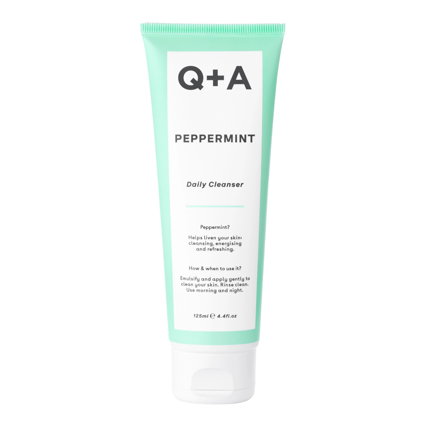 Q+A - Peppermint - Daily Cleanser - żel do mycia twarzy, wzbogacony o składniki nawilżające, które umożliwiają oczyszczenie skóry bez zaburzenia równowagi lipidowej. Alantoina to skuteczny środek łagodzący i nawilżający, działa ochronnie na skórę. Olejek miętowy wspiera równowagę lipidową i dodatkowo posiada właściwości antybakteryjne.