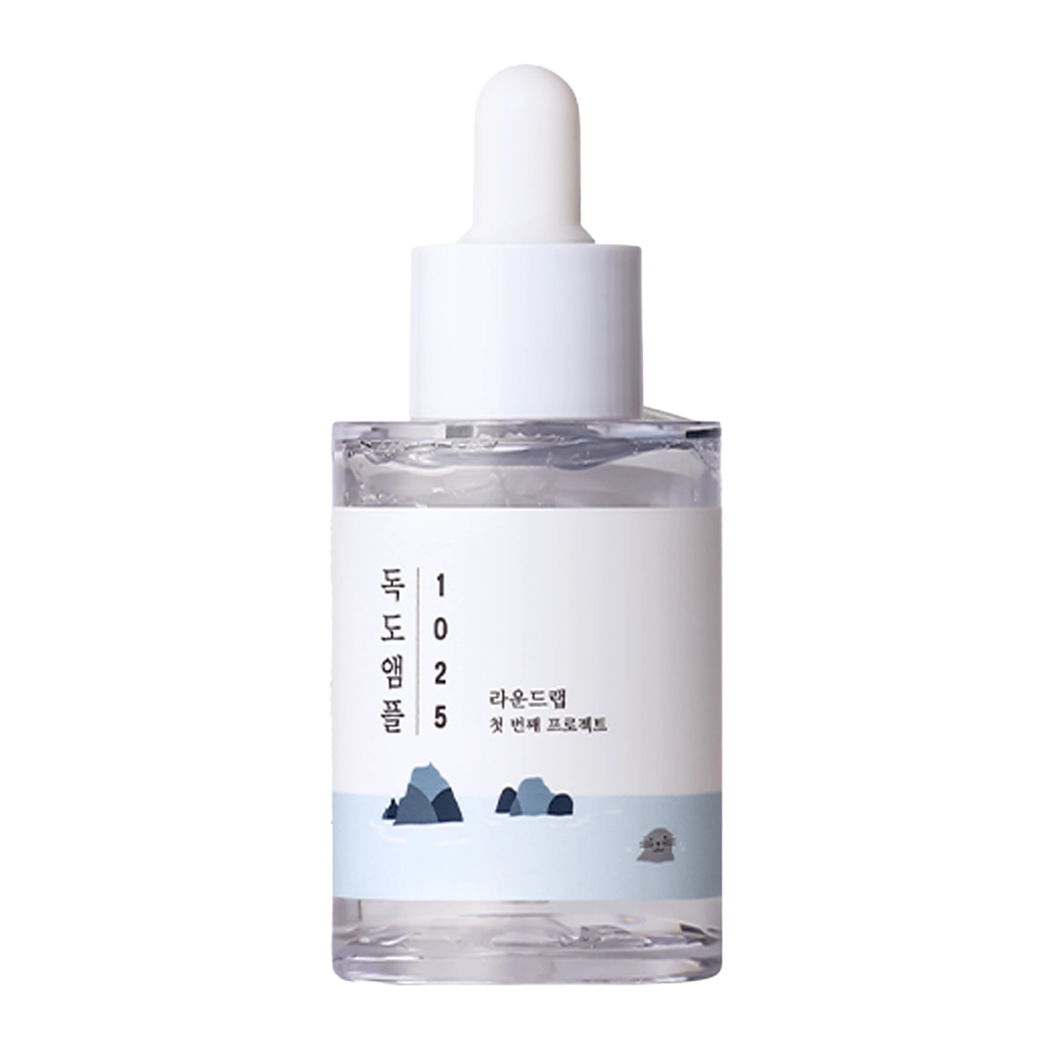 Round Lab - 1025 Dokdo Ampoule - ampułka do twarzy o lekkiej, wodnistej formule. Zawiera hydrolizowany kwas hialuronowy, który silnie nawilża skórę, a także hydrolizowany kolagen poprawiający jej jędrność. W składzie znajduje się również łagodzący pantenol oraz ceramid NP odbudowujący barierę ochronną. Produkt jest odpowiedni dla wegan.