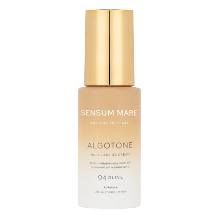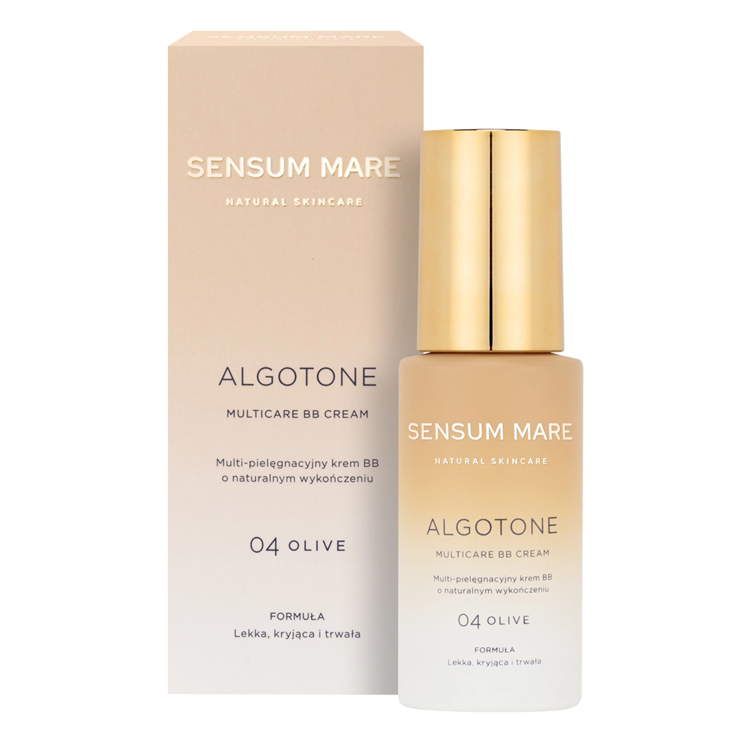 Sensum Mare - Algotone - Krem BB - Dark - krem BB bogaty w pielęgnujące skórę składniki aktywne. Posiada naturalne, aksamitne wykończenie, skutecznie kryje drobne niedoskonałości bez tworzenia efektu maski. Dodatkowo zawiera kompleksy: Plankton Glass Flower®, Kompleks, Pollustop®chroniące przed prominiowaniem UVA, UVB, podczerwonym oraz niebieskim, a także przez zanieczyszczeniami powietrza. Kompleks z 5 alg morskich i woda z lodowca norweskiego zapewniają skórze silne nawilżenie. Produkt zawiera 97% składników pochodzenia naturalnego i jest wegański.