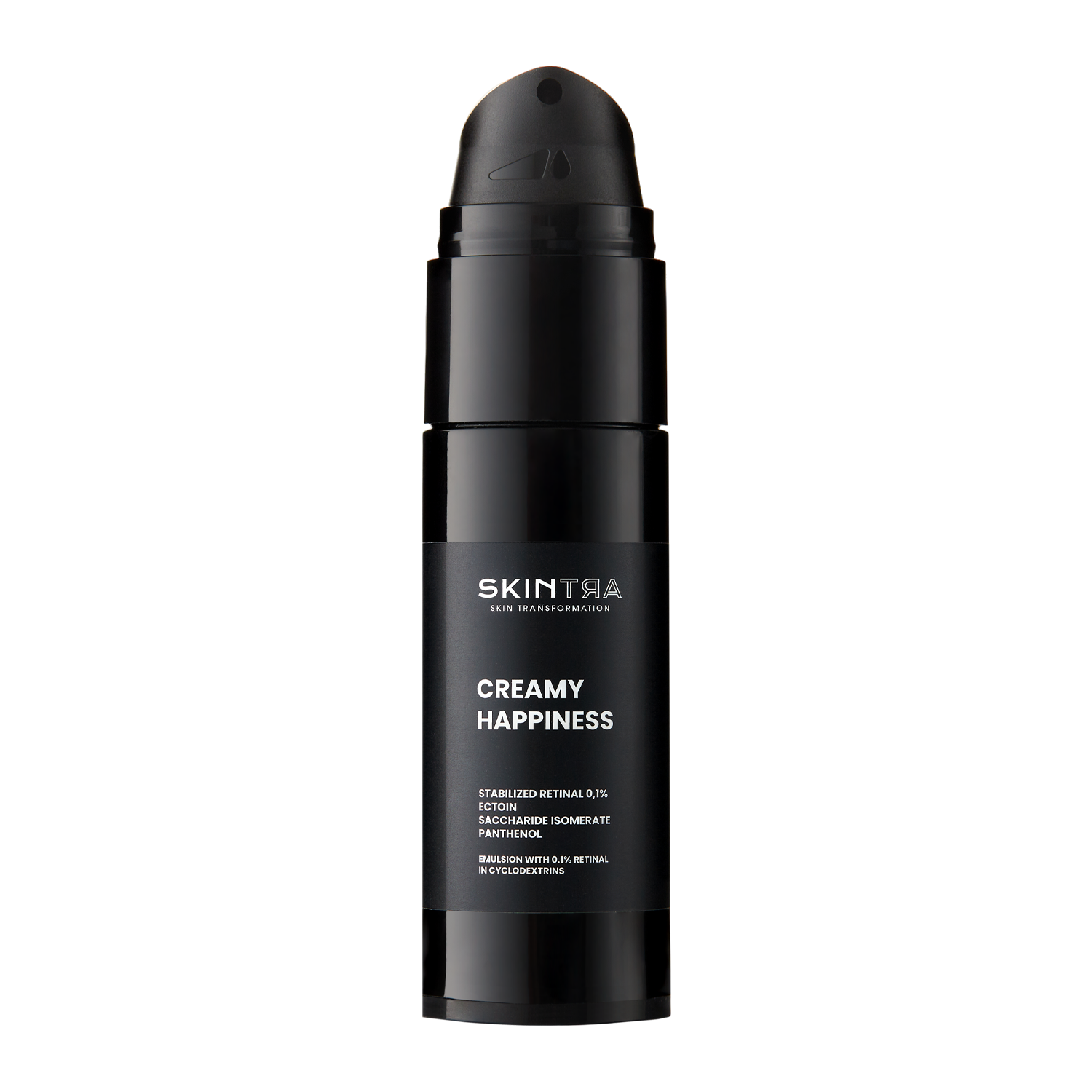 - retinal 0,1% w cyklodekstrynach - jest prekursorem kwasu retinowego i wymaga tylko jednego przekształcenia, aby zmienić się w tę aktywną formę, jest skuteczny już w niskim stężeniu, a jednocześnie dobrze tolerowany przez skórę. Stymuluje produkcję kolagenu, zmniejsza widoczność zmarszczek, redukuje przebarwienia, ujednolica koloryt, wygładza strukturę skóry i poprawia jej rozświetlenie, wykazuje działanie antybakteryjne i przeciwzapalne, niwelując niedoskonałości,