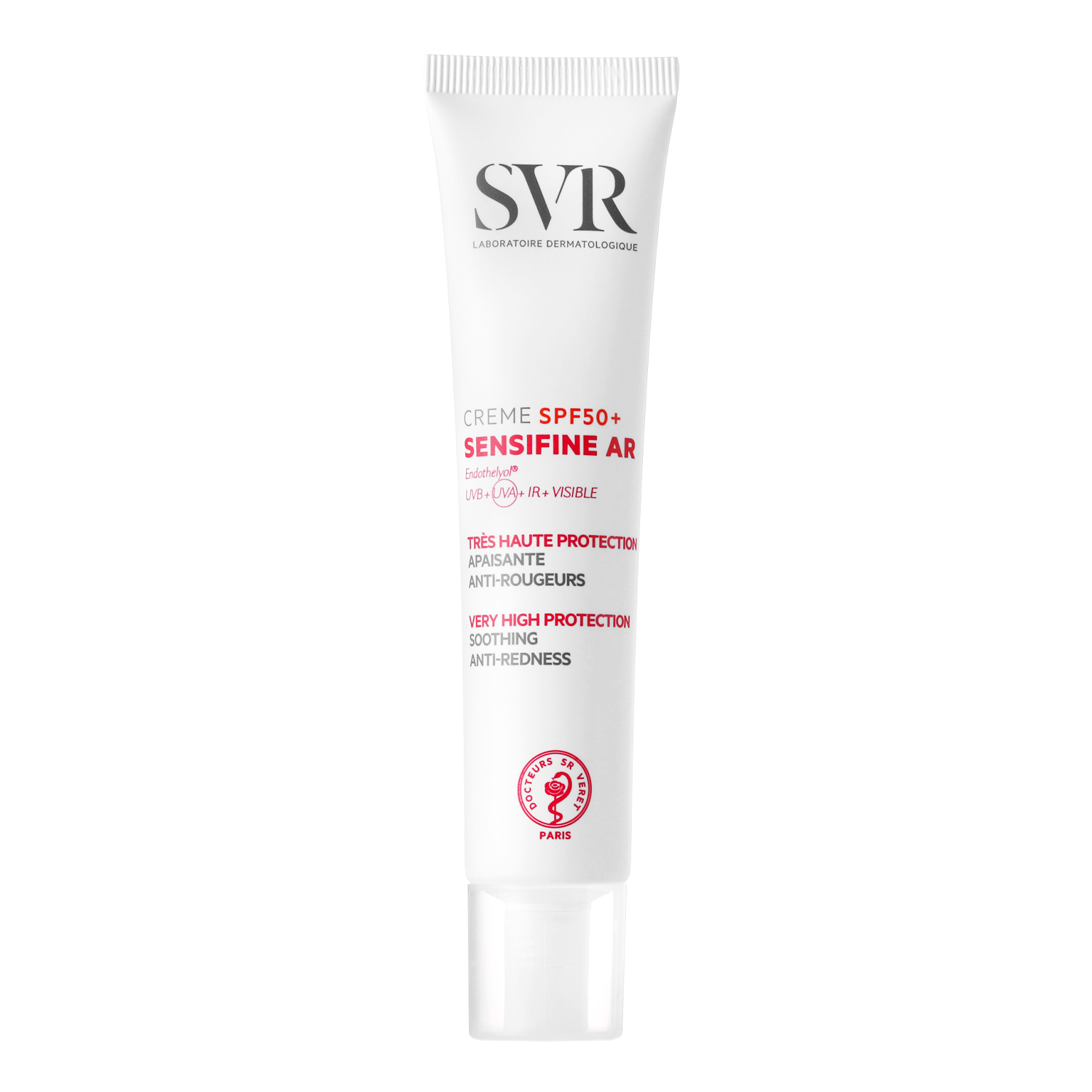 SVR - Sensifine AR Creme SPF50+ - kojący krem z bardzo wysoką ochroną przeciwsłoneczną do skóry naczyniowej z filtrami chemicznymi, które zapewniają ochronę przed UVA i UVB. Został wzbogacony o kompleks Endothelyol, który zmniejsza widoczność naczyń krwionośnych, rumienia i zaczerwienienia, działa prewencyjnie na tworzenie się nowych naczyń oraz rozjaśnia skórę naczyniową. Dodatkowo ekstrakt z lukrecji łagodzi podrażnienia, ma właściwości antybakteryjne i antyoksydacyjne, a witamina E działa przeciwstarzeniowo. Formuła hipoalergiczna, odpowiednia do skóry wrażliwej, naczyniowej czy z trądzikiem różowatym.