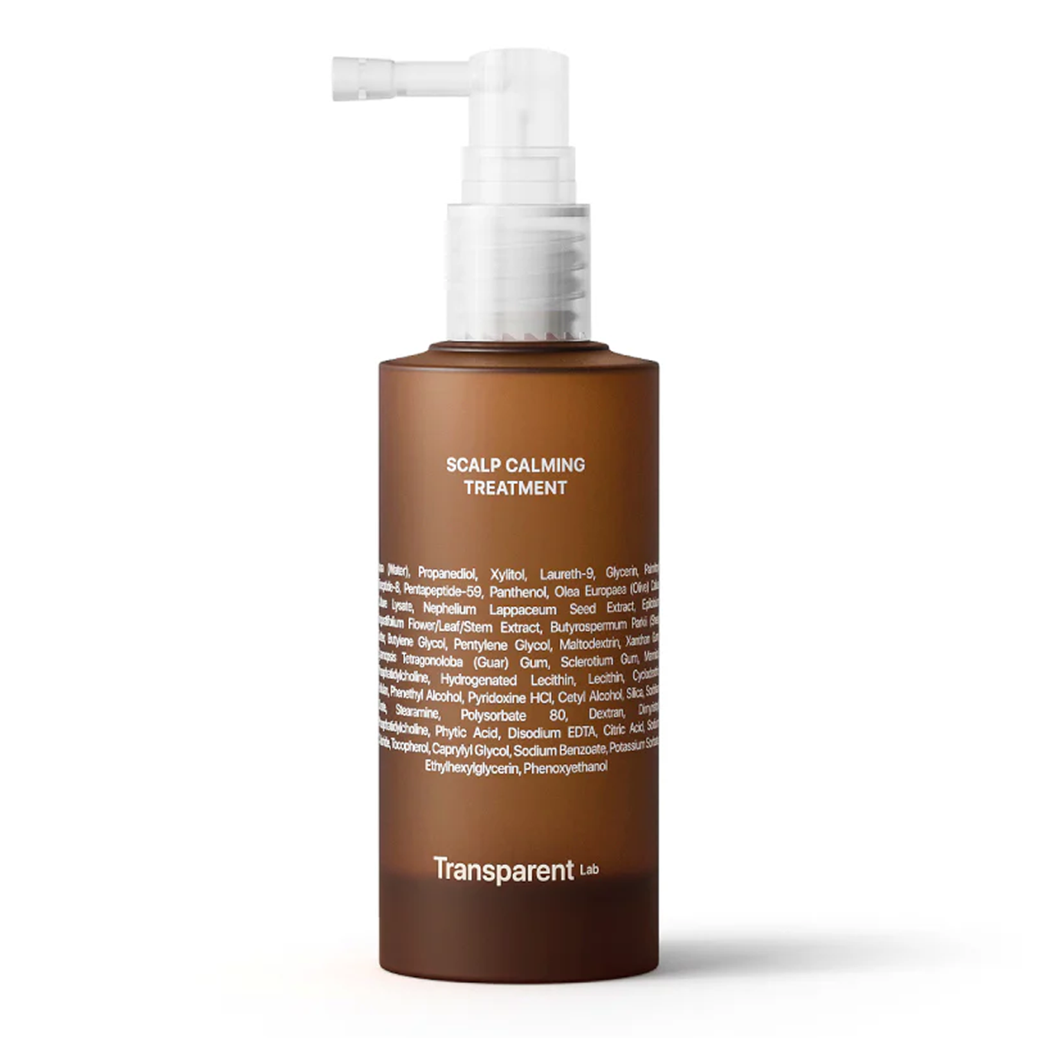 Transparent Lab - Scalp Calming Treatment - kuracja do włosów w formie łagodzącej wcierki, która stanowi prawdziwe ukojenie dla wrażliwej i podrażnionej skóry głowy. Zapewnia efekt długotrwałego nawilżenia, redukcji swędzenia i nadwrażliwości. Bazuje na składnikach o potwierdzonej skuteczności, które dzięki metodzie kapsułkowania dużo lepiej przenikają do skóry. Zastosowany Olive Phytopeptide™ utrzymuje nawilżenie, a pantenol łagodzi zaczerwienienia i regeneruje. Kompleks neuropeptydowy chroni skórę przed czynnikami zewnętrznymi oraz zmniejsza stan zapalny, a składnik Defenscalp© redukuje łuszczenie naskórka i uczucie świądu. Formuła produktu jest wegańska.