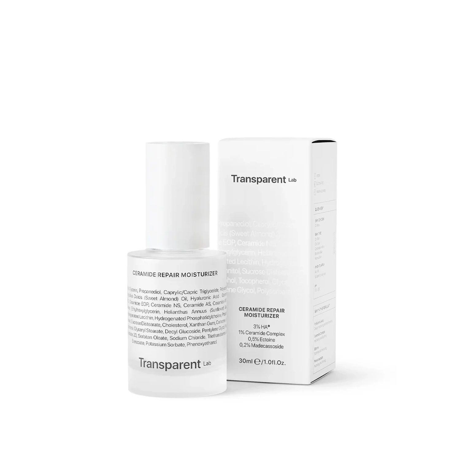 Transparent Lab - Ceramide Repair Moisturizer - intensywnie regenerujące serum do skóry twarzy, szyi i dekoltu. Serum jest bogate w biokompatybilne, odżywcze substancje. Przede wszystkim są to ceramidy - niezastąpione składniki cementu międzykomórkowego. Skwalan i olej ze słodkich migdałów wspierają działanie bariery hydrolipidowej. Kolejne dobroczynne składniki to cholesterol i fosfatydylocholina, które wspomagają wchłanianie się substancji aktywnych w głąb skóry i pozwalają na intensywną regenerację. Preparat zawiera również kwas hialuronowy, który dodatkowo nawilża skórę. Mleczną konsystencję łatwo zaaplikować za pomocą dozownika w formie pipety. Szybko się wchłania i nie pozostawia wyczuwalnej warstwy.