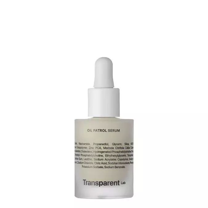 Transparent Lab - Oil Patrol Serum - żelowe serum z 10% niacynamidem oraz cynkiem w stężeniu 5%. Witamina B3 zmniejsza widoczność rozszerzonych ujść gruczołów łojowych, reguluje wydzielanie sebum, a także poprawia stan bariery hydrolipidowej i zapobiega powstawaniu przebarwień. Cynk zawarty w preparacie przyspiesza proces regeneracji skóry i działa przeciwzapalnie, a także reguluje wydzielanie sebum i działa matująco. Kosmetyk ma pH wahające się między 5.3 - 5.8 i pozostawia zmatowioną skórę.