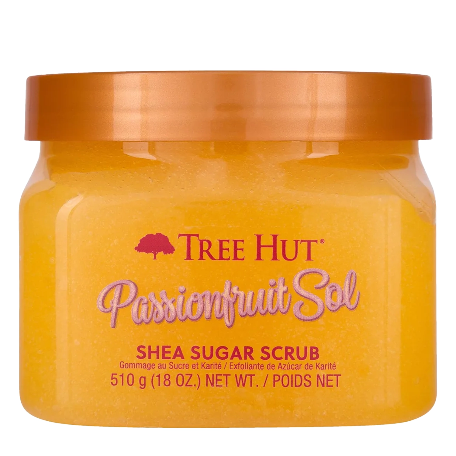 Tree Hut - Shea Sugar Scrub Passionfruit Sol - peeling do ciała o egzotycznym zapachu marakui. Głęboko odżywia i równoważy nawilżenie skóry, przywracając jej piękny blask. Zawarte drobinki cukru usuwają martwy naskórek, odsłaniając promienną, miękką i gładką skórę. Formuła kryje w sobie bogactwo olejów roślinnych i masło shea, które wspólnie dbają o dobrą kondycję skóry, pozostawiając ciało pachnące i zregenerowane. Produkt odpowiedni dla wegan.