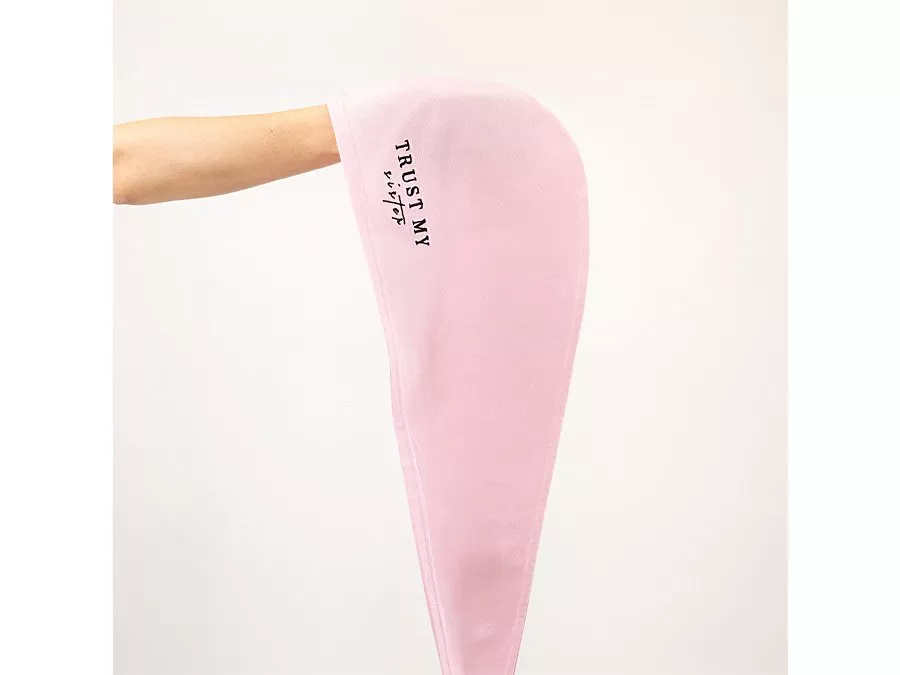 Trust My Sister - Bawełniany Ręcznik do Włosów - delikatny, bawełniany ręcznik do włosów. Dzięki delikatnej strukturze bawełny nie powoduje uszkodzeń włosów i nie elektryzuje ich, nie powoduje plątania włosów i rozdwajania się końcówek. Ręcznik ma kształt kaptura, który ułatwia zakładanie na głowę. Można go stosować do odsączania włosów, podczas nakładania masek, czy do stosowania ploppingu, czyli metody, która pozwala podkreślić naturalny skręt kręconych włosów.