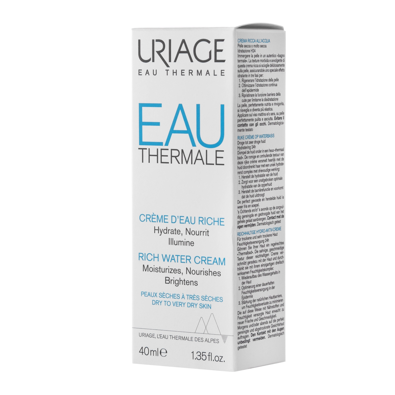 Uriage - Eau Thermale Rich Water Cream - krem nawilżający do twarzy o bogatej konsystencji. Pozostawia skórę miękką i odżywioną. Zapewnia długotrwałe nawilżenie oraz chroni przed przesuszeniem. Zawiera odżywczy olej z nasion meadowfoam oraz regenerujące masło shea. Został wzbogacony o nawilżającą trehalozę. Dodatek skwalanu poprawia stan bariery hydrolipidowej, a mocznik doskonale zmiękcza. Świetnie sprawdzi się w pielęgnacji skóry przesuszonej, przywracając jej poczucie komfortu. Produkt został przebadany pod kontrolą dermatologiczną oraz jest hipoalergiczny.