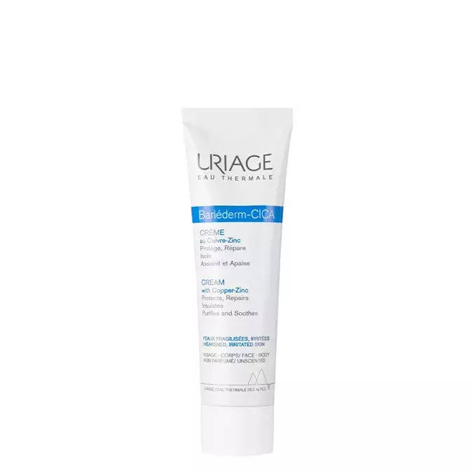 Uriage - Bariederm Cica Cream - krem z kompleksami: Poly-2P i GF-Repair o działaniu stymulującym procesy odnowy naskórka, regenerującym i ochronnym. Ponadto, zawiera tlenek cynku wykazujący działanie przeciwzapalne i przyspieszające gojenie, glukonian miedzi o działaniu regenerującym oraz kwas hialuronowy zapewniający skórze wysoki poziom nawilżenia. Krem może być stosowany na twarz i na skórę ciała.