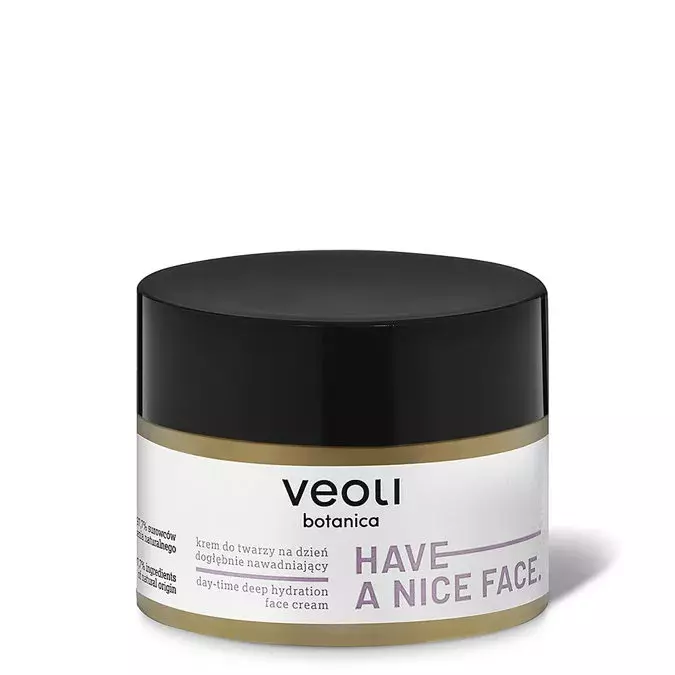 Veoli Botanica - Have A Nice Face - Day-Time Deep Hydration Face Cream - Krem do Twarzy na Dzień Dogłębnie Nawadniający- silnie nawilżający krem do codziennej pielęgnacji skóry twarzy. Zawarty w nim kompleks ekstraktów i olejów pochodzenia naturalnego skutecznie odżywia, regeneruje i łagodzi nawet wrażliwą skórę. Chroni naskórek przed utratą wody, zmiękcza i wygładza. Jest również źródłem wielu antyoksydantów, dzięki czemu zapobiega procesom starzenia. Produkt wegański, zawiera 97,7% surowców pochodzenia naturalnego i jest zgodny z less waste.